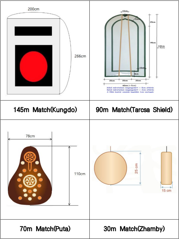 In Korea, traditional horn bows and bamboo arrows are typically distinguished from carbon bows and arrows. However, no distinction shall be made based on materials in this competition, and all equipment shall be regarded as equal without any difference in scoring or awarding. (However, all equipment must still fully comply with the specifications outlined in these regulations.)